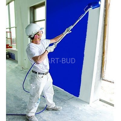 Lekkie i przenośne urządzenie JetRoller łączy wałek natryskowy, przedłużkę natrysku i wałek ręczny w jednym, kompletnym zestawie. Pasuje do dostępnych rozpylaczy bezpowietrznych i pozwala oszczędzić czas, stanowiąc idealny dodatek do każdego arsenału malarskiego. JetRoller to połączenie efektu wałka i natrysku w jednym ruchu, co oszczędza czas i robociznę w przypadku zadań obejmujących natrysk i wtórne rozprowadzanie farby wałkiem. JetRoller jest idealny do szorstkich lub porowatych powierzchni, minimalizuje roznoszenie farby i zapewnia wykończenie jednolitej jakości. Używanie agregatu do aplikacji wałkiem ciśnieniowym zapewnia znaczne korzyści. Nie trzeba przerywać i schylać się do zbiornika za każdym razem, kiedy wałek wymaga zanurzenia w farbie. Po prostu pociągasz za spust, aby dostarczyć farbę do wałka. Dokładnie kontrolujesz ile farby potrzeba. Tradycyjne wałki wymagają rozłożenia farby na wałku za pomocą wałkowania na kratce, przed naniesieniem na ścianę. W przypadku wałków wewnętrzny ślimak powoduje równomierną dystrybucję farby na włosie wałka, z czego wynika bardziej jednorodne i lepsze wykończenie. W zależności od powierzchni i żądanego wykończenia można wybrać różne rodzaje włosia. Z perforowaną powłoką syntetyczną, lub wzmocnioną powłoką perforowaną. Łącząc rozpylanie bezpowietrzne z nakładaniem wałkiem, urządzenie JetRoller pozwalało na szybszą realizację projektów mniejszym nakładem pracy i z wysoką jakością wykończenia wałkiem. Odłączana rączka wałka sprawiała, że modele JetRoller mogły być wygodnie uzupełniane o wysięgnik klasy produkcyjnej. Ponieważ nakładanie wałkiem JetRolling jest wykonywane przy znacznie niższym ciśnieniu niż w przypadku rozpylania, rozprysk farby jest znacznie mniejszy niż w przypadku tradycyjnych tego typu rozwiązań.