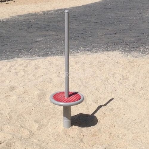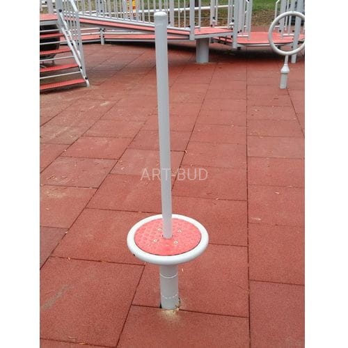 Karuzela w kształcie drążka na okrągłym podeście z funkcją obrotową. Powierzchnia podestu jest wykonana z płyty PE dzięki czemu jest miękka (bezpieczna), antypoślizgowa (dodatkowa antypoślizgowa faktura) oraz nie ulega nagrzewaniu na słońcu oraz zmrożeniu zimą.
