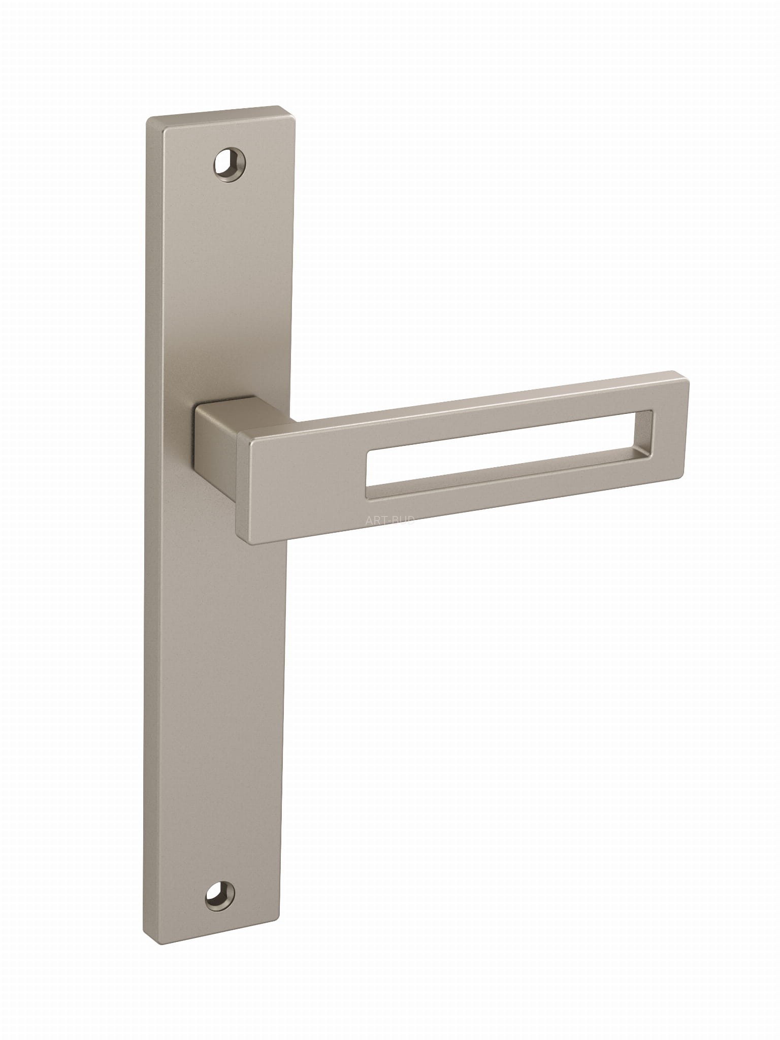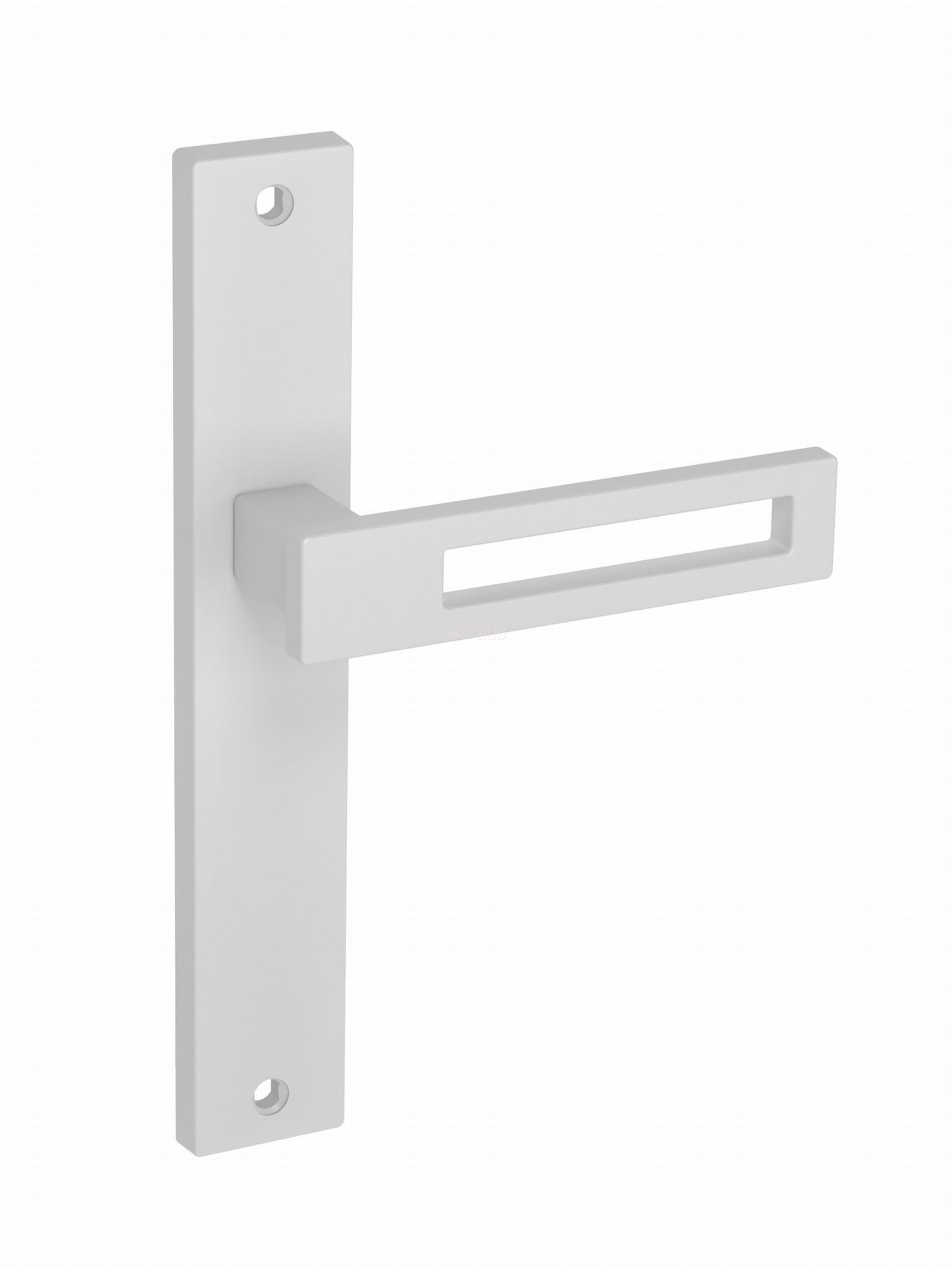 Nowoczesna klamka z serii TOM , występuje w czterech wersjach z długim szyldem : wersja do klucza, wersja do wkładki bębenkowej, wersja łazienkowa także wersja z szyldem gładkim, oraz w czterech wersjach kolorystycznych.