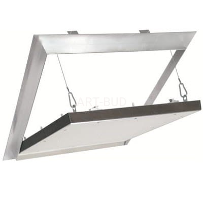 Klapa rewizyjna składa się z aluminiowych profili z wkładką z płyty gipsowo-kartonowej GKF 25 mm (F 30).