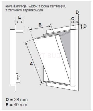 Klapa rewizyjna dostępna jest w poniższych wymiarach standardowych. Wymiary A i B wynoszą: