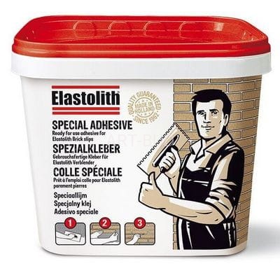 Specjalny klej Elastolith przeznaczony do montaż płytek Elastolith. Klej jest jednocześnie fugą Elastolith i występuje w 6 kolorach (białym, brązowym, jasnoszarym, szarym, szarym cementowym, antracytowym). Pełni jednocześnie rolę kleju oraz fugi, co umożliwia jego szerokie zastosowanie. W łatwy sposób pozwala na montaż płytek bez używania specjalistycznych narzędzi. Wystarczy rozprowadzanie kleju Elastolith poprzez pacę zębatą i wygładzenie fugi wilgotnym pędzelkiem. Zapewnia to odpowiednią przyczepność oraz zabezpiecza płytki przez działaniem warunków atmosferycznych, nadając im jednocześnie elegancki wygląd. Szeroka paleta kolorystyczna pozwala na wybór odpowiedniego koloru, najlepiej pasującego do całej kompozycji.