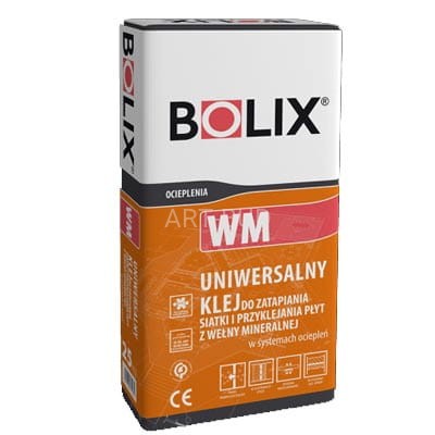 Zaprawa klejąca Bolix WM do zatapiania siatki w warstwie zbrojonej w systemie ocieplania ścian zewnętrznych budynków ETICS oraz przyklejania płyt z wełny mineralnej o strukturze laminarnej i lamelowej do typowych podłoży mineralnych takich jak: beton, mury ceglane, tynki cementowe i cementowo-wapienne, itp.