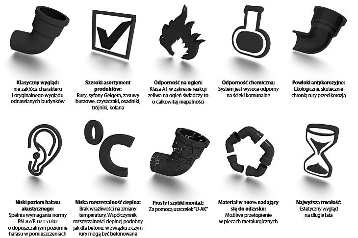 ZALETY SYSTEMU ŻELIWNYCH RUR KANALIZACYJNYCH: