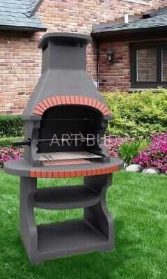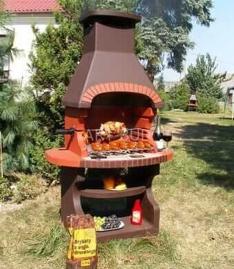 Grille ogrodowe typu kominek składają się tylko z trzech elementów i są gotowe do użycia natychmiast po ustawieniu – nie wymagają sklejania ani malowania. Kominek grill ogrodowy i wykonany jest z odpowiednio zbrojonego specjalnego betonu o zwiększonej odporności termicznej. Grille ogrodowe typu kominek malowane są ekologicznymi farbami akrylowymi w kolorach: grafit, brązowy, ceglasty i kombinacja tych kolorów. Kominek grill ogrodowy obłożony jest naturalnym kamieniem i dodatkowo zabezpieczony jest impregnatem do kamienia.