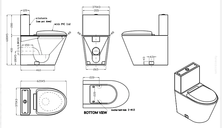 Kompakt WC stojący z deską PVC stal szlachetna matowa Faneco
