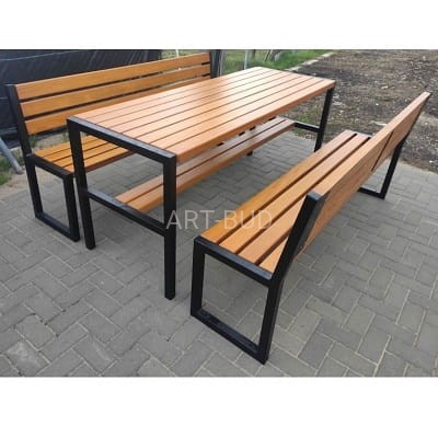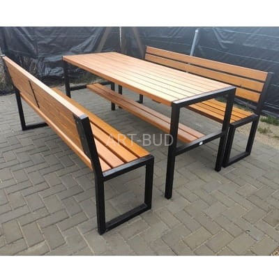 Komplet mebli ogrodowych stalowo drewnianych 2 ławki plus stół