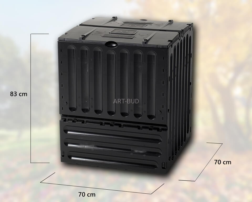 ompostownik EcoKing o pojemności 400L 600L wykonany został z wysokiej jakości materiału Thermolen® w kolorze czarnym.