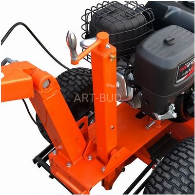 Dzięki wbudowanemu akumulatorowi oraz rozrusznikowi odpalanie silnika odbywa się za pomocą kluczyka. Maszyna wyposażona w przednie koło podporowe które bardzo ułatwia prowadzenie koparki podczas pracy. Koparki bez koła podporowego wymagają użycia dużej siły do ciągłego unoszenia oraz przemieszczania koparki.