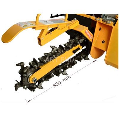 Koparka łańcuchowa GF-800 charakteryzuje się bardzo mocnym benzynowym silnikiem 15 KM, który w połączeniu z wytrzymałą konstrukcja pozwala na jeszcze szybszą i wydajniejszą pracę. Jej stosunkowo niewielkie rozmiary oraz łatwość obsługi pozwalają na pracę w miejscach niedostępnych dla większości standardowych koparek. Z łatwością wykona precyzyjne wykopy w pobliżu ogrodzeń lub innych przeszkód. Specjalny ślimak odprowadza ziemię na jedną stronę wykopu, dzięki temu zanieczyszczenie trawnika i uszkodzenie gruntu w obszarze pracy jest minimalne. Do obsługi wymagana jest tylko jedna osoba.