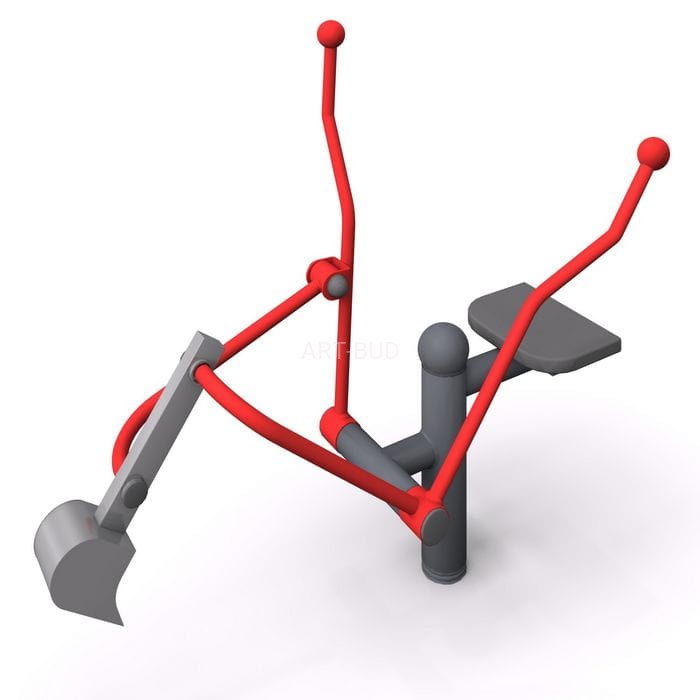 Koparka jest wyjątkową propozycją na place zabaw z piaskownicą lub nawierzchnią z piasku. Produkt jest doskonałym połączeniem świetnej zabawy z aktywnością ruchową dziecka, angażującą i tym samym wzmacniającą jego górne partie ciała. Urządzenie posiada drążki sterownicze do poruszania łyżką koparki zakończone bezpiecznymi, kulistymi elementami. Łyżka koparki wykonana jest ze stali nierdzewnej. Pozostała część konstrukcji koparki składa się ze stali ocynkowanej i malowanej proszkowo. Siedzisko wykonane z komfortowego, elastycznego tworzywa PU.