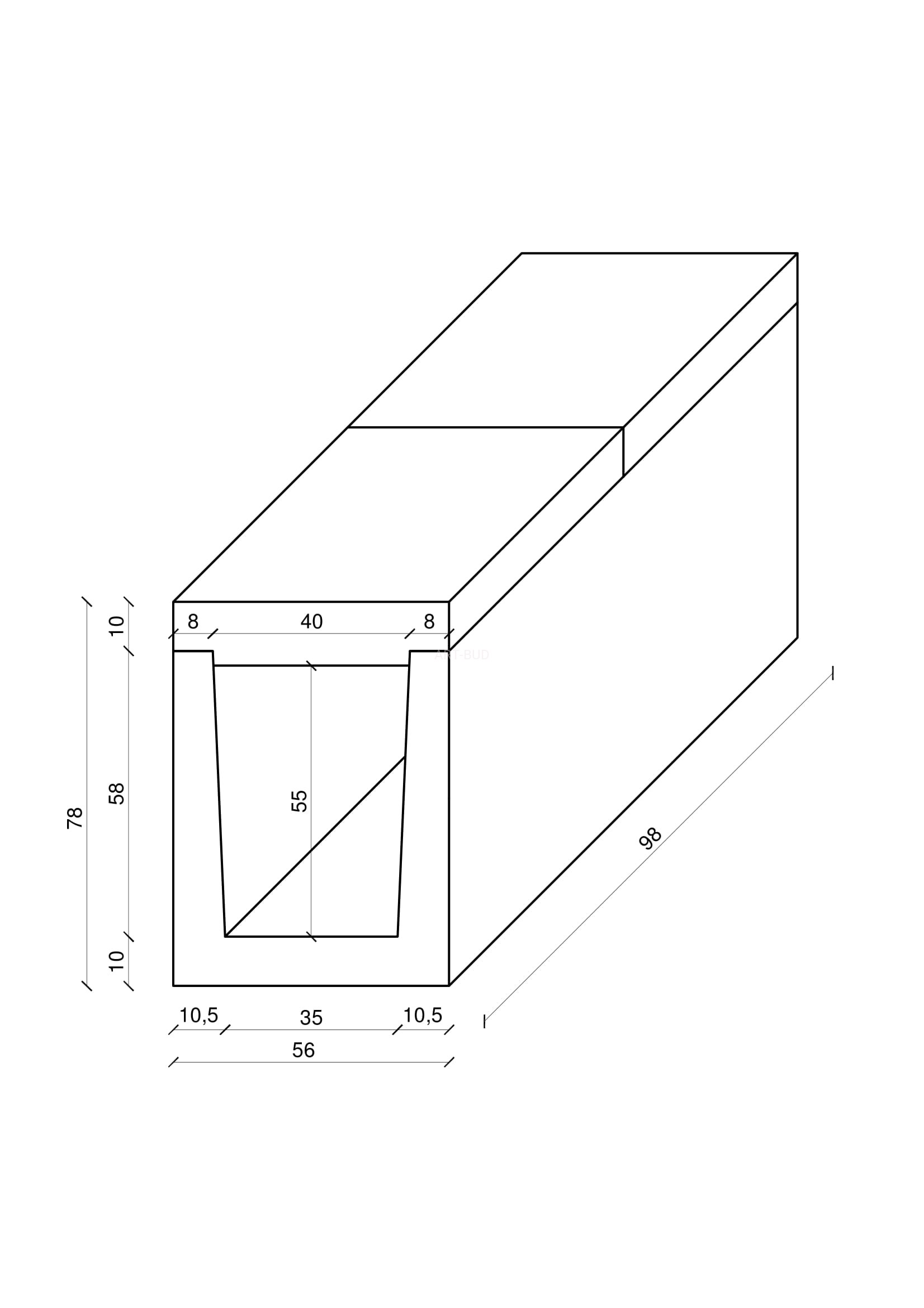Koryto skrzynkowe pogłębiane zbrojone 0,98 mb