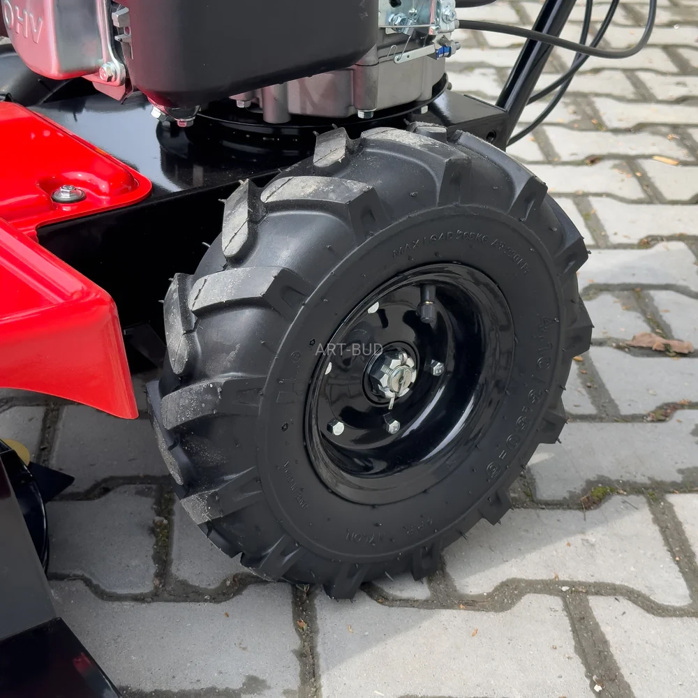 Duże koła z solidnym bieżnikiem sprawiają, że kosiarka bębnowa dobrze sprawdza się nawet w trudnych warunkach terenowych oraz zapewnia dobrą przyczepność nawet na obszarach nieużytkowych i bardzo zarośniętych.