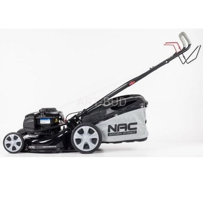 Kosiarka spalinowa z napędem LS46-625E-HS 150cc NACNowoczesna kosiarka do trawników z napędem, posiadająca duży kosz, doskonały silnik Kosiarka spalinowa NAC LS46-625E-HS wyposażona jest nowoczesny, czterosuwowy, górnozaworowy, silnik Briggs & Stratton 625E OVH SERIES o pojemności 150 cm 3 i maksymalnym momencie obrotowym 8,5 Nm, charakteryzujący się bezawaryjnością, oszczędnością w spalaniu oraz niską emisją spalin. Stalowa obudowa kosiarki zapewnia trwałość i odporność na uszkodzenia. Wygodny uchwyt centralnej regulacji wysokości koszenia pozwala łatwo ustawić pożądaną wysokość w siedmiostopniowym zakresie od 25 mm do 75 mm. Kosz o pojemności 60 litrów z plastikową pokrywą przeciwpyłową pozwala na dłuższe koszenie bez konieczności opróżniania, a szerokość 46 cm zapewni bardziej efektywne koszenie