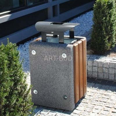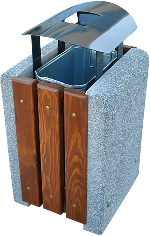 Kosz betonowo drewniany czworokątny z daszkiem i wkładem metalowym 50 l