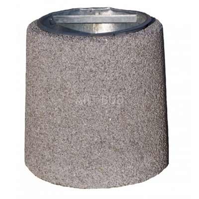 Betonowy, okrągły kosz na śmieci zrobiony został z kamienia płukanego oraz z grysów. Ten śmietnik chodnikowy posiada dosyć owalne kształty, dlatego będzie nie tylko funkcjonalny, ale i estetyczny w miejscu, w którym się go zamieści.
