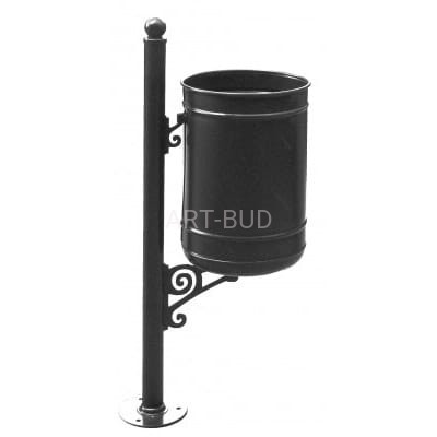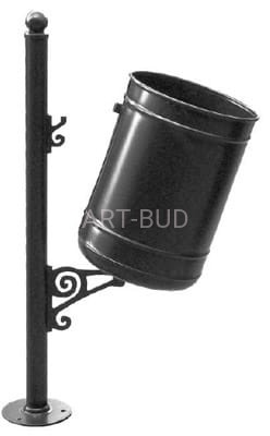 Pojemnik stabilnie umocowanym do słupka wykonanego z rury ø 60 mm od góry zakończoną ozdobną kulą.