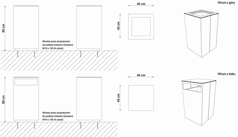 Proste ale nowoczesne w formie kosze na śmieci z serii Square z charakterystyczną, centralną podstawą doskonale wpiszą się w przestrzeń o nowoczesnym charakterze. Kosze z serii Square wykonane są ze stali ocynkowanej i lakierowanej proszkowo lub ze stali nierdzewnej i standardowo wyposażone we wkłady z blachy ocynkowanej.