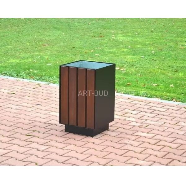 Kosz miejski wolnostojący 65 l stalowo drewniany Hugo