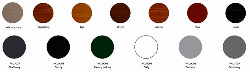| Stal zwykła / ocynk i lakier proszkowy | Drewno krajowe / świerk |