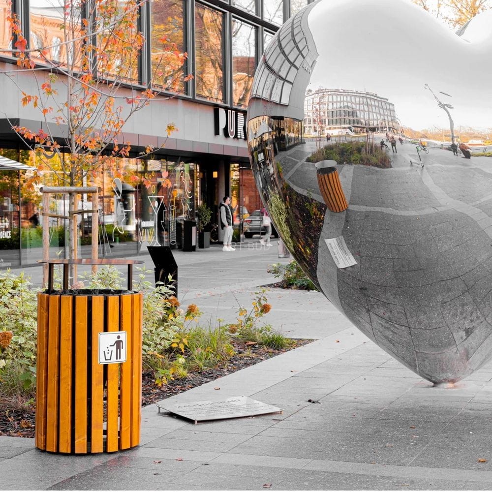 Konstrukcja kosza umożliwia wrzucanie odpadów ze wszystkich stron. Stalowy daszek skutecznie zabezpiecza zawartość kosza przed ptactwem i warunkami atmosferycznymi. Kosz na śmieci Miami posiada certyfikat zgodności z normą PN EN 1176. Może być zatem bezpiecznie ustawiony także przy placach zabaw. Kosz na śmieci Miami to po prostu niezwykle uniwersalny kosz miejski o wyjątkowo dużej pojemności. Doskonale komponuje się z pozostałymi elementami małej architektury. W połączeniu z ławką parkową, stojakiem na rowery czy donicą miejską z łatwością wykreujesz przyjazną i estetyczną przestrzeń.