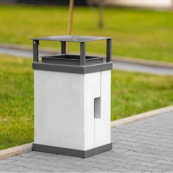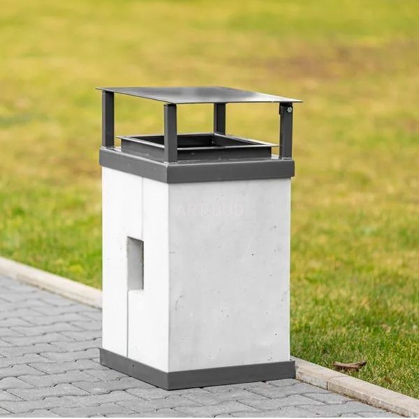 Kosz na śmieci miejski betonowo stalowy z daszkiem Roma