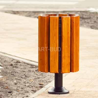 Efektowny kosz na śmieci, drewniano żeliwny z blaszanym wkładem z popielnicą. Bardzo popularny i klasyczny w formie kosz na śmieci. Posiada estetyczną i solidną konstrukcję, która doskonale sprawdza się na miejskich skwerach, parkach oraz w sąsiedztwie klasycznych budynków.