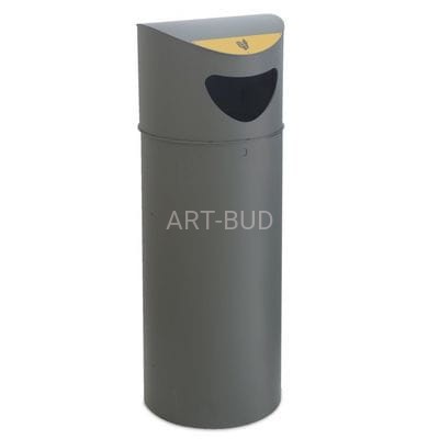 Górna część z etykietami w zależności od frakcji śmieci (tworzywa sztuczne, papier, szkło) posiada zawiasy.