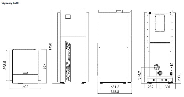 Hydro jest automatycznym kotłem peletowym ze zintegrowanym zbiornikiem przeznaczonym do spalania peletu na palniku zrzutkowym. Innowacyjny wbudowany palnik na pellet, posiada rotacyjne obrotowe palenisko do spalania pelletu - dzięki czemu nie szkaluje się ono nawet przy słabszej jakości pelletu. Wbudowany system automatycznego czyszczenia rusztu oraz wymiennika zapewnia niemal bezobsługową pracę urządzenia. Kocioł hydro jest urządzeniem z automatycznym zapłonem i pracą. Sterownik pozwala na zaprogramowanie pracy kotła na każdy dzień tygodnia. Kocioł może pracować zarówno z zewnętrznym termostatem pokojowym jak i wbudowanym termostatem. Urządzenie posiada samoczyszczący obrotowy palnik rotacyjny, który działa wg opinii klientów naprawdę świetnie. Budowa kotła, uniemożliwiająca spalanie innych paliw na ruszcie ( np węgli, miałów itp ) umożliwia klientom staranie się dofinansowanie zakupu pieca. Nadrzędnym celem w projektowaniu tego modelu kotła, była bezawaryjna praca oraz kompaktowe wymiary. Dzięki czemu kocioł zajmuje zaledwie 1 m kw powierzchni a z racji wentylatora wyciągowego nie potrzebuje zbyt dużego komina. Innowacyjny palnik zapewnia zejście z mocą kotła i palnika nawet poniżej 10 kW, co ważne, na takiej mocy nasze urządzenie działa płynnie i bezproblemowo. Modulacja mocy palnika umożliwia płynne działanie kotła w mocy 6-8 kW. Certyfikowane kotły c.o hydro posiadają certyfikat TUV Rheinland oraz są zgodne z 5 klasą europejską normą EN 303-5-2012. Wbudowany system automatycznego czyszczenia rusztu oraz wymiennika zapewnia niemal bezobsługową pracę urządzenia.Kocioł c.o hydro wyposażony jest w nowoczesny sterownik firmy KEY, który sterować może do 4 obiegów grzewczych. Moduł internetowy zapewnia pełną kontrolę nad kotłownię i podgląd pod jej pracę.Kompaktowe wymiary oraz doskonała, niskoemisyjna praca na mocy 6-12 kW idealnie modeluje nasz produkt do ogrzewania powierzchni w małych domach lub mieszkaniach - np o powierzchni 60-90 m kw. Kocioł Hydro zajmuje zaledwie 1 m2 powierzchni dzięki zinetgrowanemu zbiornikowi na pelety. Systemy automatycznego oczyszczania zapewniają osiągnięcie najwyższych parametrów wydajności i sprawności cieplnej całorocznej.Trzeba bowiem pamiętać że wiele firm podaje sprawność i efektywność urządzenia z testów