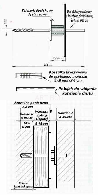 - kotwa wiążąca wykonana jest z drutu stalowego lub nierdzewnego o średnicy 4 mm,