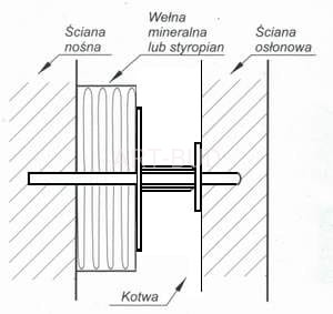 - kotwa znajduje zastosowanie przy wznoszeniu murów warstwowych z dociepleniem styropianem lub wełną mineralną,