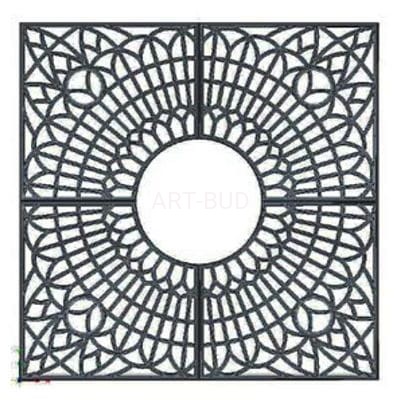 Krata ochronna odlewana z żeliwa szarego niskostopowego. Poszczególne elementy kraty łączy się ze sobą za pomocą śrub. Krata pomalowana proszkowo czarna tekstura. Układanie w gruncie na podsypce z kruszywa. Istnieje możliwość komponowania krat w różnych kształtach.