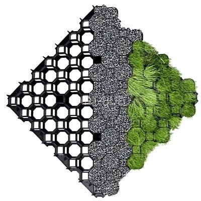 – wyjątkowa konstrukcja kratki pozwala rozrastać się trawie horyzontalnie i wertykalnie, co powoduje lepsze ukorzenienie, zatrzymanie wilgoci i odporność trawy.