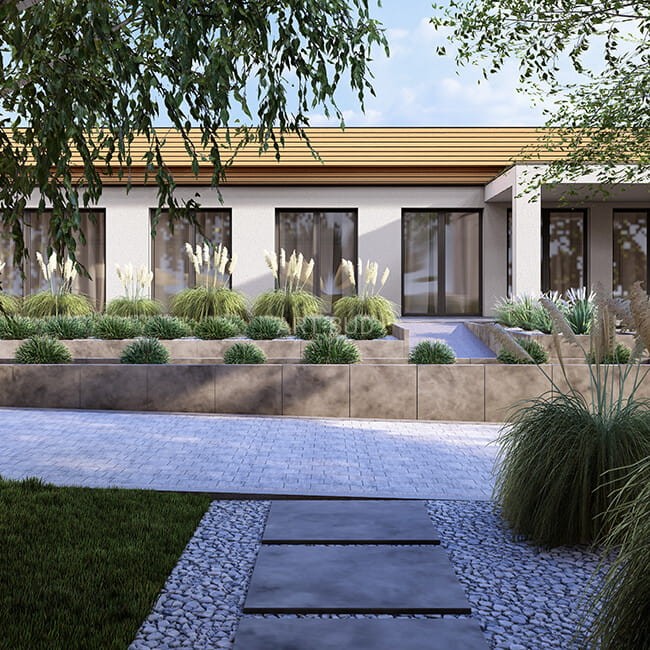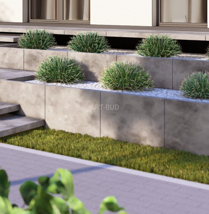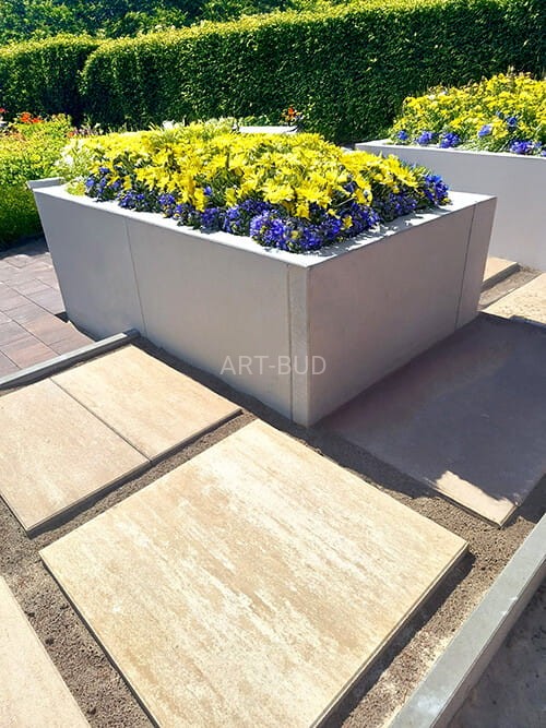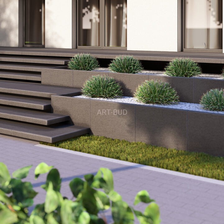to wszechstronny element architektury ogrodowej, który pełni funkcję stopnia, płyty lub palisady – w zależności od Twoich potrzeb i wyobraźni. Dzięki nowoczesnemu wzornictwu i dopracowanym proporcjom łączy estetykę z funkcjonalnością, stając się zarówno ozdobą, jak i praktycznym rozwiązaniem w przestrzeni zewnętrznej. Możliwość aranżacji na dwóch wysokościach pozwala tworzyć zarówno niskie rabaty, eleganckie donice, jak i efektowne podesty czy stopnie tarasowe. Wersja lewitującego stopnia KRATOS nadaje przestrzeni lekkości, wprowadzając subtelny efekt unoszenia się nad ziemią, który idealnie wpisuje się w nowoczesny styl.