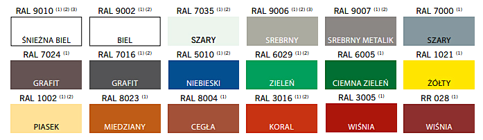 Pozostałe kolory z wzornika są dostępne na zapytanie.