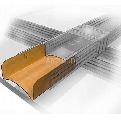 Łącznik wzdłużny do profili CD 60/wykorzystywany jest do wzdłużnego połączenia profili CD 60 na jednym poziomie. Ogranicza zbyt głębokie wsunięcie łącznika podczas drgań sufitu i rozłączeniu połączenia. Powłoka cynkowa chroni przed korozją.
