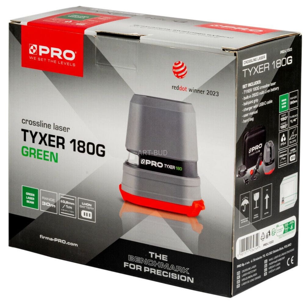 Laser krzyżowy TYXER 180G PRO opcjonalnie ze statywem