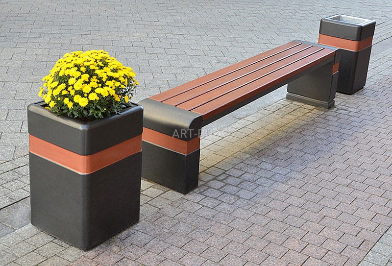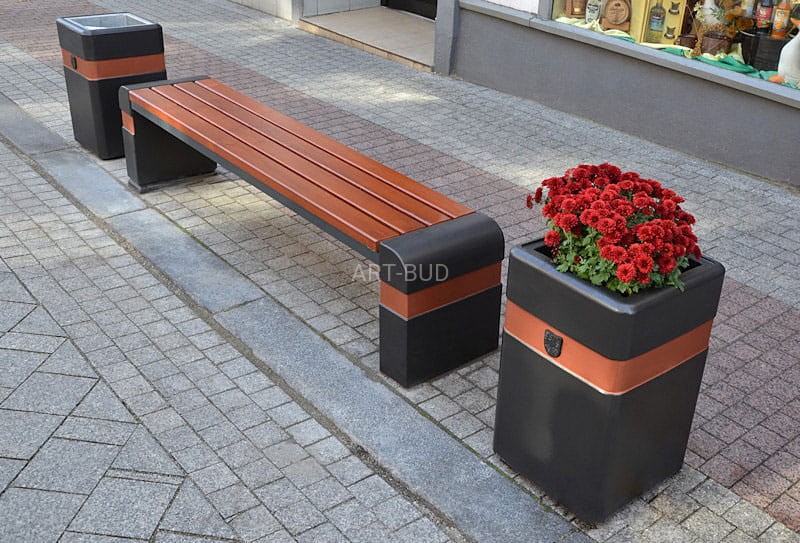Genewa to najnowsza kolekcja mebli ulicznych, betonowo drewnianych, dedykowana do wszechstronnych aranżacji w parkach, ogrodach, placach i pasażach miejskich. Jeśli od architektury wymagasz czegoś więcej niż standardowych rozwiązań, wybierz betonową ławkę miejską Genewa. Dzięki temu zyskasz pięknie prezentującą się ławkę miejską z betonu, wzbogaconą o gustowne drewniane dodatki. Stylowa kolorystyka sprawi, że Twoja inwestycja nabierze klimatu. Zastosowane w ulicznej ławce betonowej Genewa materiały, to produkty z najwyższej półki, które dodatkowo podniosą prestiż Twojej inwestycji.