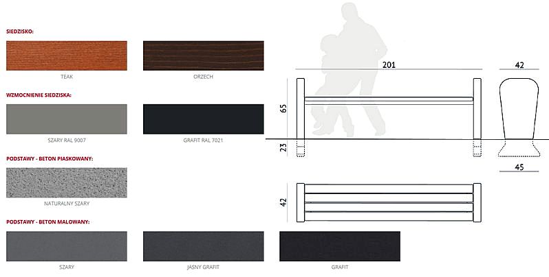 Ławka betonowo drewniana bez oparcia kolekcja Navan
