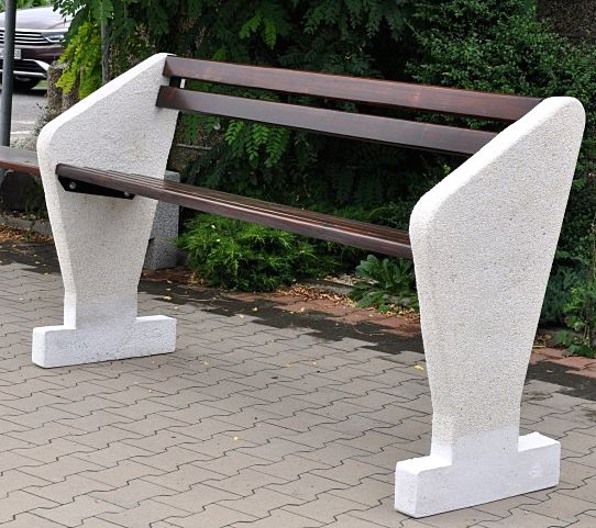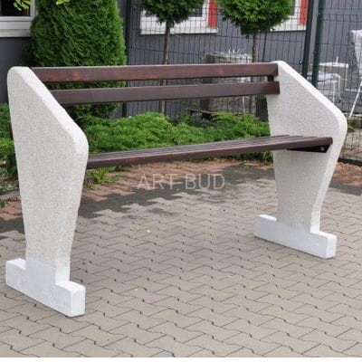 Ławka betonowa z elementami drewnianymi. Klasyczne uzupełnienie przestrzeni zurbanizowanych, ulic , placów , pasaży. Niezbędny element traktów pieszych i chodników.Ławka produkowana jest z betonu wysokiej klasy, wibrowanego, zbrojonego stalą, wykonana w technologii "beton płukany" pokryty kamieniem płukanym lub mieszanką grysów. Listwy drewniane wykonane są z drewna świerkowego o grubości 4 cm, malowanie dwukrotnie lakierobejcą na wybrany z naszej kolorystyki listew kolor.