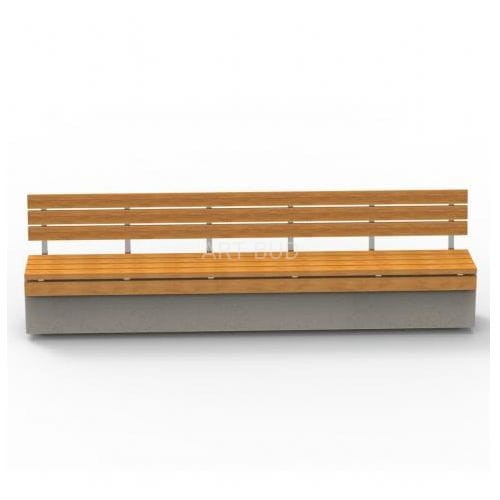 Ławka betonowa z oparciem i wygodnym siedziskiem wykonanym z drewna - świerk skandynawski montowanym do podstawy betonowej. Deski na siedzisko oraz oparcie montowane są do profilu ze stali nierdzewnej za pomocą wkrętów, a całość konstrukcji do elementu betonowego.