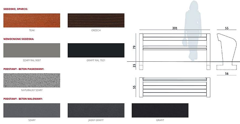 Ławka betonowo drewniana z oparciem kolekcja Navan