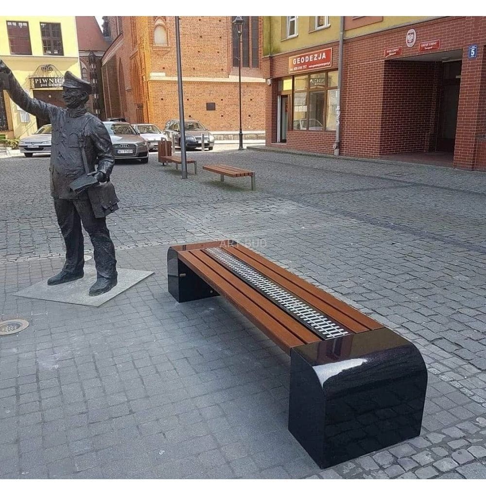siedzisko — granit czarny polerowany, drewno liściaste impregnowane malowane 2-krotnie
