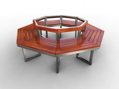 Ławka LA.12.02 to połączenie ośmiu ławek które tworzą figure w kształcie ośmiokąta.