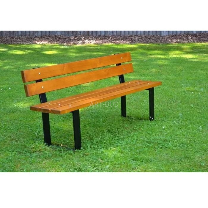Ławka miejska parkowa z oparciem drewniano stalowa BCITY W171 150 lub 180 cm grubość deski 4 cm