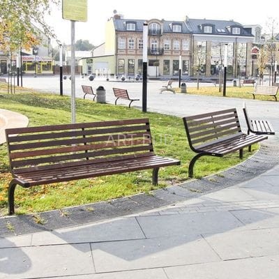Konstrukcja ławki dostępna jest w dwóch wersjach: ze stali kwasoodpornej lub stali malowanej proszkowo i w dwóch rodzajach drewna olcha lub sapelli