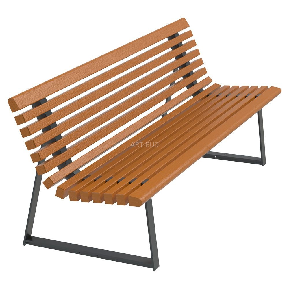 Nowoczesna ławka parkowa uliczna, drewniana, na konstrukcji stalowej ocynkowanej, do samodzielnego montażu. Oferowana w trzech rodzajach drewna, długości 180 cm. Do wyboru są również kolory lakierów i impregnatów, a także kolor farby nawierzchniowej konstrukcji stalowej. Ławka przygotowana do montażu przez przykręcenie w podłożu utwardzonym.