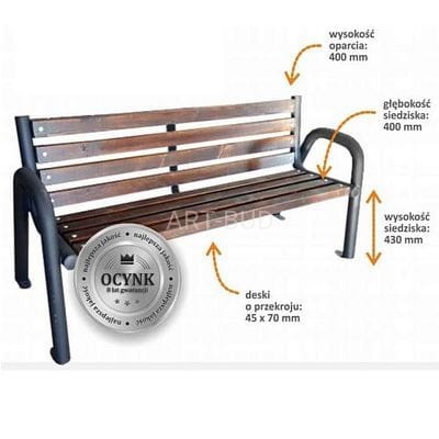 Klasyczna ławka miejsko-parkowa, stalowo drewniana o długości 175 cm. Wykonana z mocnej rury stalowej fi 60 mm i desek świerku skandynawskiego.