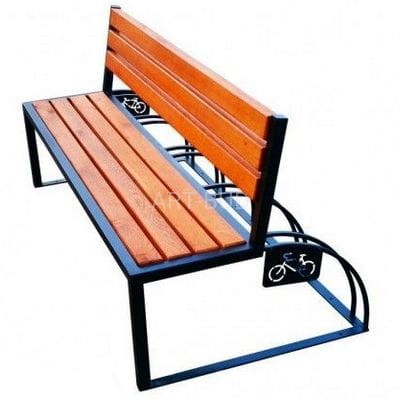 Praktyczne nowoczesne połączenie ławki ze stojakiem na rowery. Idealnie komponuje się w parkach, trasach rowerowych, parkingach. Konstrukcja ławki wykonana z profila 40 x 40 wraz z grubymi deskami ławkowymi tworzy solidną ławkę, która będzie służyć na długie lata.