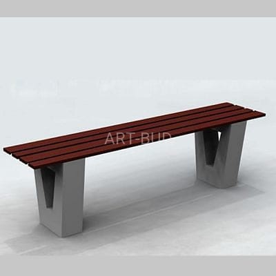 Ławka parkowa betonowa do wkopania składa się z betonowych podpór, wykonanych z wibrowanego betonu zbrojonego drutem fi 8 oraz siedziska drewnianego. Krawędzie podpór są zaokrąglone w celu uniemożliwienia przypadkowego zranienia się oraz pomalowane farbą, która zapewnia dużą odporność na warunki atmosferyczne. Siedzisko wykonane jest z drewna liściastego o grubości 40 mm. Deski są impregnowane i malowane lakierobejcą. Montaż ławki odbywa się poprzez wkopanie na głębokość 390 mm.